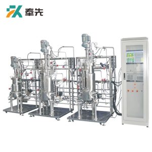Concatenate is a set of laboratory glass fermentation equipment, with automatic control of sterilization, convenient operation and powerful functions, which can meet the fermentation of various purposes, such as batch, batch fed, and even animal cell culture. The color touch screen is used to display all measured values and control parameters, which greatly facilitates the user's operation. Each tank is installed with 4 peristaltic pumps next to the tank on the front of the control box, which can replenish the fermenter with acid, alkali, defoamer and medium. Various parameters in fermentation such as pH, DO, temperature and rotational speed can be monitored by the controller, and all data and control parameters can be transmitted to the controller or computer. The structure is compact, and various components can be integrated on the fermentation system. It adopts the direct coupling mechanical stirring method driven by the upper part or the indirect coupling mechanical stirring method of the lower driving magnetic force, which has a simple structure and stable operation.